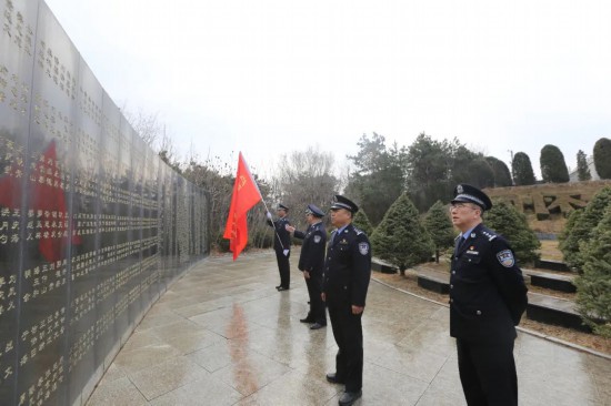 蒼松翠柏掩映下的烈士陵園莊嚴(yán)肅穆,鐫刻著“革命烈士永垂不朽”的紀(jì)念碑巍然矗立。上午9時(shí),全體民警身著警服、列隊(duì)整齊,在紀(jì)念碑前舉行祭掃儀式。民警代表邁著鏗鏘步伐,向烈士紀(jì)念碑敬獻(xiàn)花籃,寄托對(duì)革命先烈的無(wú)限哀思。全體民警行舉手禮,向?yàn)閲?guó)家和人民獻(xiàn)出生命的英烈致以崇高敬意。