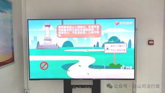 在司法局辦公公共區域,循環播放森林防火宣傳片。宣傳片以生動形象的畫面、通俗易懂的語言,向過往的工作人員和辦事群眾展示了森林火災的危害、引發森林火災的常見原因以及如何預防森林火災等知識,讓大家深刻認識到森林防火的重要性和緊迫性。