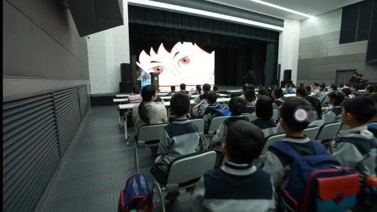 在虛擬攝影棚的綠幕前,孩子們揮動雙臂,數字合成技術瞬間將其送入璀璨星河;在錄音棚內,學生們大聲朗誦曾經學過的古詩,孩子們坐在杜比全景聲混錄棚中,親耳見證聲音如何被賦予生命。科技賦能的創意實踐,讓電影工業的神秘面紗徐徐展開。