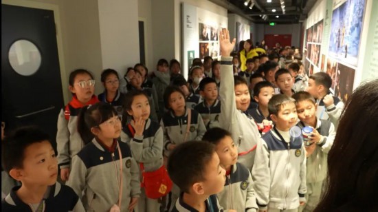 走進拍攝抗戰題材影片的實景影棚,那段歲月觸手可及。在電影《暗夜》的拍攝現場,孩子們托起“真實”的道具,聆聽大學生講解員講述那段歷史中的感人故事,孩子們稚嫩的臉龐映著肅穆的神情。電影學院團總支書記白浩陽說道,“電影是打開歷史的鑰匙,我們要讓年輕一代成為紅色基因的傳承者,而非旁觀者。”這種沉浸式紅色教育,讓歷史不再是課本上的文字,而成為可觸摸、可感知的立體存在。