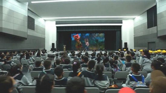 電影學院黨總支副書記白松在活動前對大學生志愿者們強調,“通過這次研學活動,要讓孩子們理解電影既是文化的載體,更是精神的火炬。”在電影學院綜合劇場里,當《放牛娃王二小》的經典畫面重現,小觀眾們屏息凝視英雄身影;當《瘋狂動物城》的奇幻場景躍然銀幕,此起彼伏的驚嘆聲織成一片,讓孩子們在光影流轉中觸摸歷史溫度。