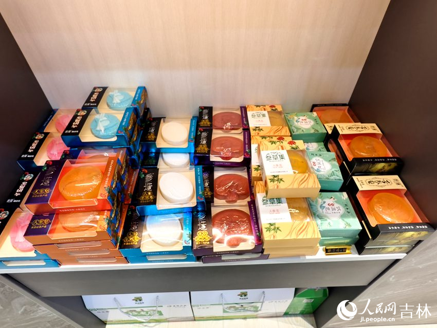 在“吉高臻品”特產店內,專門設立了“撫松人參”品牌專柜,精選“撫松人參”旗下品牌進行展銷,為消費者提供優質、放心的產品,其中包括干制人參、人參蜜片、人參面膜、人參皂、人參護手霜等8個企業帶來的30多種產品。