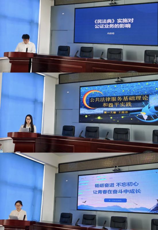 活動中,3位來自司法行政不同崗位的青年干部化身“時代傳聲筒”,以聲為刃、以情為墨,圍繞“慶祝五四青年節 擦亮清廉底色 錘煉過硬作風 勇于擔當作為”主題,結合司法行政工作實際,從不同角度、不同層面,用生動的語言、鮮活的事例、真摯的情感,講述了民法典對公證業務的影響、公共法律服務四平實踐、司法行政青年干部對清廉的理解、對作風的堅守、對擔當的詮釋,充分展現了司法行政青年干部昂揚向上的精神狀態、扎實過硬的專業素養和清正廉潔的良好形象。