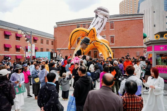 五一期間我們推出巨型木偶和高蹺相結(jié)合的巡游類演出。因?yàn)楦哕E和木偶都是中國的非物質(zhì)文化遺產(chǎn),我們在此基礎(chǔ)上進(jìn)行了一些創(chuàng)新,使用了不一樣的外觀和技術(shù),我覺得大家也會(huì)喜歡這樣的演出。