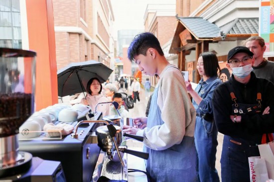 走進(jìn)“啡必要狂歡·咖啡市集”,這里匯集了20余家精品咖啡攤位,濃郁的咖啡香氣瞬間讓人有種“來一杯”的沖動(dòng),不自覺地走到攤位前品嘗一番。五味子養(yǎng)生茶、好柿之徒、橙C美式……眾多口味讓游客大呼過癮、回味無窮。