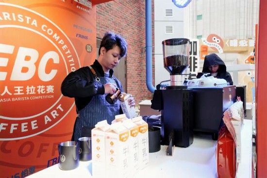 13時(shí),EBC新人王拉花大賽長春賽區(qū)現(xiàn)場,觀眾們圍得里三層外三層,來自全國的16名咖啡師正進(jìn)行著緊張刺激的對(duì)決,只見他們手腕輕抖,用奶泡在咖啡表面勾勒出流暢的弧線,不一會(huì)兒,一幅幅栩栩如生的圖案便躍然于杯中,引得快門聲此起彼伏。