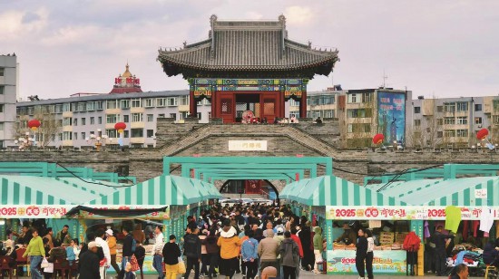 “五一”假期,全省各地舉辦豐富多彩的文旅活動,吸引八方游客前來游玩體驗。圖為吉林市2025春饗北山民俗商貿大集人頭攢動。(趙鵬龍 攝)