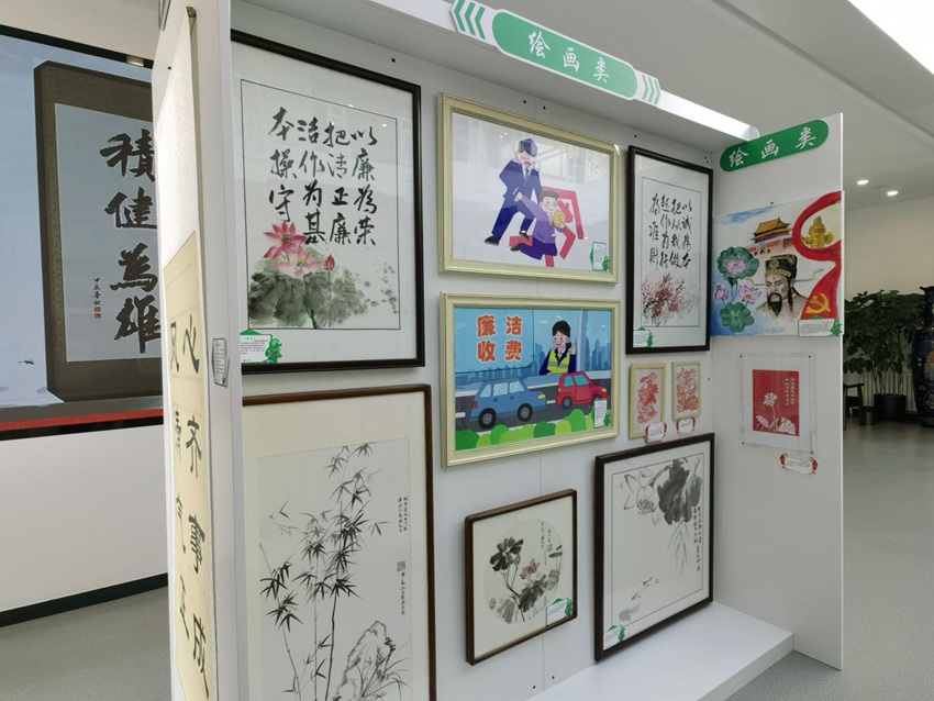 步入展廳,一幅幅丹青墨寶與創(chuàng)意裝置交相輝映。此次巡回展以“清風(fēng)吉高”為主題,精心挑選了集團(tuán)干部職工創(chuàng)作的104幅作品,其中書法作品45幅、繪畫作品35幅、剪紙作品13幅、創(chuàng)意作品11幅。這些作品形式多樣、內(nèi)涵豐富,通過(guò)名言佳句、真草隸篆、山水花鳥等多種元素,從不同視角對(duì)廉潔理念進(jìn)行了全方位、多層次的詮釋和倡導(dǎo),充分展現(xiàn)了吉高集團(tuán)廉潔文化的深刻內(nèi)涵,傳遞出崇廉尚潔的堅(jiān)定價(jià)值理念。