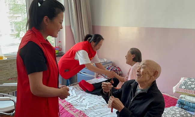 吉林市昌邑區民主街道退役軍人服務站工作人員來到敬老院,工作人員帶著自己縫制的荷包和包的粽子送給退役軍人。“這粽子格外香!”86歲的抗美援朝老兵張志勇邊吃著熱乎的粽子邊高興地說。服務站聯合社區衛生服務中心建立“1+1”結對檔案,為每位老兵定制健康服務方案,讓老兵們暖身更暖心。