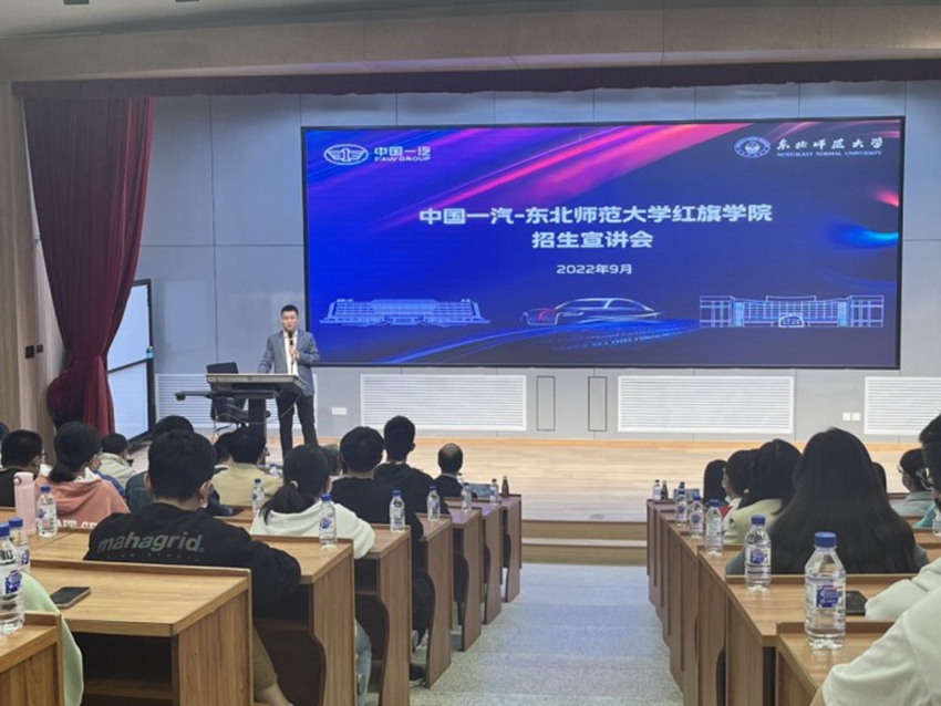 在吉林長春這片充滿創新活力的土地上,東北師范大學(簡稱學校)與中國一汽集團(簡稱一汽)攜手共建的紅旗學院(簡稱紅旗學院),正以“人工智能+汽車”交叉學科為核心,探索一條產學研深度融合的人才培養新路徑。作為吉林省教育科技人才產業一體化發展的典型案例,紅旗學院自2022年成立以來,通過制度創新、管理優化和資源整合,為智能汽車領域輸送了一批急需高層次專門人才,成為學校推動區域創新發展的新引擎。