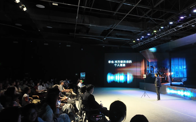 “穿梭在一個又一個奇妙夢幻的展演單元之間,白澤不斷汲取著能量……當AI之心被成功激活的那一刻,白澤不僅深刻理解了數字生命的潛力,更在這個數字與現實交織的宇宙中找到了自己的歸屬。”在270度環繞屏與全息屏聯動打造的虛擬空間中,師生們跟隨人民網原創數字人白澤——這位從數字世界中成長出的智能生命體,共同展開了一場驚心動魄的冒險。