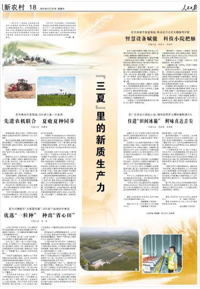 人民日報關(guān)注吉林等地:“三夏”里的新質(zhì)生產(chǎn)力