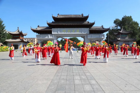 8時,公園里喇叭聲聲、鑼鼓陣陣,東三街道秧歌隊踏著歡快的鼓點、揮動著彩綢彩扇盡情舞動,隊形變化多樣,動作矯健流暢,彰顯了群眾昂揚向上的精神風貌,吸引眾多群眾駐足觀賞、連連叫好。“扭秧歌是咱們的傳統民俗,現在融入了文明新風的元素,在文藝活動中寓教于樂,看著熱鬧又有意義。”圍觀市民李琪笑著說。