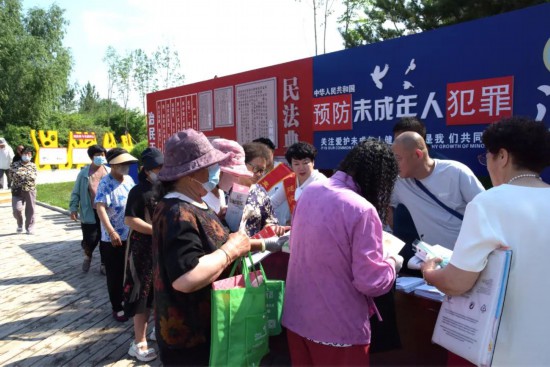 活動一:法治宣傳面對面 解惑答疑零距離。6月26日上午,洮南市司法局社區矯正中心依托法治文化公園,搭建法律咨詢服務平臺。聯合司法所、法律援助中心、律師事務所等專業力量,重點圍繞《社區矯正法》《刑法》等法律法規進行普法講解,并借勢“國際禁毒日”契機同步開展禁毒宣傳,有效提升群眾識毒防毒拒毒意識。活動現場氛圍熱烈,共發放法律宣傳資料、法治主題水杯、法治主題雨傘等法治宣傳品500余份,吉林楊潤東律師事務所商律師對過往群眾提供一對一法律咨詢,現場解答群眾法律咨詢10余件。