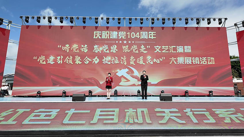 黨徽閃耀,照亮奮斗之路,紅心向黨,永葆忠誠初心。7月1日上午,為隆重慶祝中國共產黨成立104周年,弘揚偉大建黨精神,圖們市隆重舉行“聽黨話 感黨恩 跟黨走”文藝匯演暨“黨建引領聚合力 提振消費暖民心”大集展銷活動,這既是全市廣大干部群眾堅定擁護黨的領導、厚植愛黨愛國情懷的生動表現,又是有效探索“黨建搭臺、經濟唱戲”模式、激活城鄉消費市場的具體實踐。
