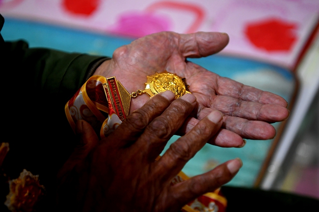 當談及負傷經歷時他云淡風輕。在華中南戰役和大西南剿匪時負傷兩次,分別在左手和右腿。當詢問現在回想負傷的情景是否后怕時?他說:“不怕!只要還有一口氣,只要不倒下,奮勇殺敵就是使命,就是責任。”