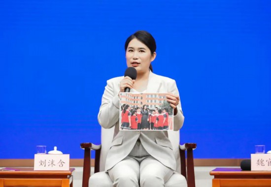 在開場環節,劉沫含介紹道:“我來自吉林省長春市,是吉林衡豐律師事務所的一名黨員律師。2019年7月,我報名參加了司法部‘援藏律師服務團’,前往西藏自治區日喀則市法律援助中心開展公益法律服務。三年援藏工作結束后,我又報名參加了‘1+1’中國法律援助志愿者行動,在新疆維吾爾自治區伊犁哈薩克自治州鞏留縣,繼續開展了兩年志愿服務。五年間,從雪域高原到伊犁河谷,我累計辦理各類法律援助案件500余件,提供法律咨詢4000余人次,代寫法律文書1000余份,開展法治宣講200余場。今天我帶來了一張照片,是我在學校給孩子講解法律知識時現場互動的畫面,至今這張照片仍擺在我的辦公桌上。援藏援疆期間,我累計為各族群眾挽回經濟損失近千萬元。但是,對我個人而言,我最珍貴的收獲是群眾的那句樸實的‘共產黨好、法律公道’。未來,我會繼續以堅定的法治信仰、赤誠的為民初心,在法治中國建設中踐行使命擔當,努力做黨和人民滿意的好律師。”