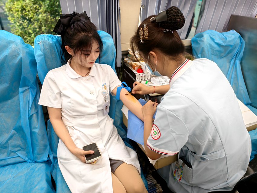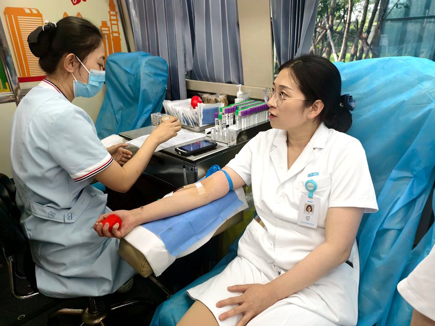 看著紅色的血液流入血袋,想到這些血液能為他人帶去健康和希望,參與獻血的醫務人員臉上都洋溢著自豪的微笑。“獻血是希望能盡我的綿薄之力幫到有需要的人,作為醫務工作者我們更應該挺身而出,也希望大家都能參與進來。”一位參與獻血的醫生表示。
