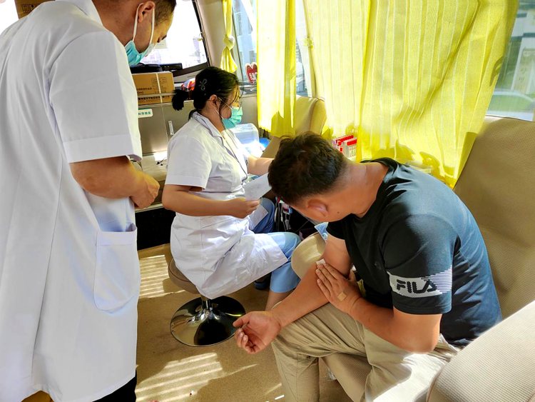 活動現場,志愿者在醫護人員的引導下依次有序進行信息登記、血壓測量、血液初篩、血型檢驗等流程。盡管天氣達到32℃,但現場秩序井然,氣氛熱烈而溫馨。“作為黨員干部,我更要帶頭獻血。”大西村村書記邢海龍綻放出燦爛笑容。黨員干部帶頭,群眾積極響應,是亮兵鎮的良好風尚。
