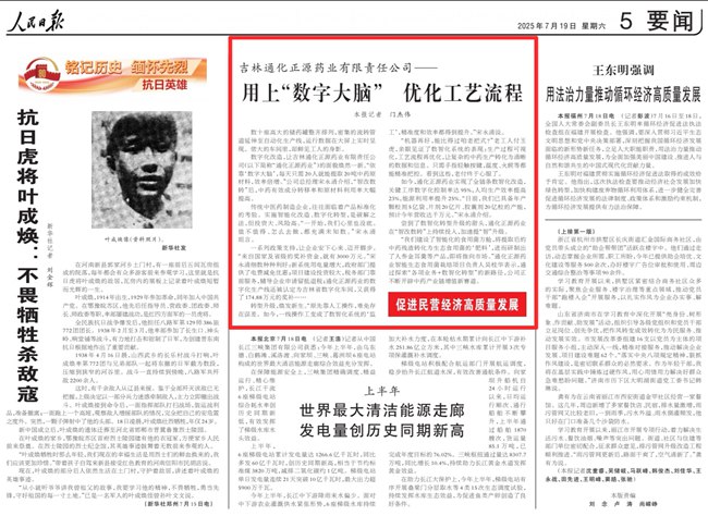 人民日報聚焦吉林通化民營企業:用上“數字大腦” 優化工藝流程