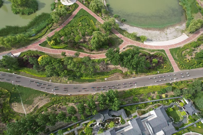 清晨8時,騎游隊伍從鎮(zhèn)賚縣全民健身中心整裝出發(fā)。首站暢游杏花島、天鵝島、盛和閣等縣城地標(biāo),3公里的城市騎行路線里,騎游者在城市與自然的交織中,感受鎮(zhèn)賚獨特的人文底蘊與生態(tài)魅力。杏花島的春日余韻尚未散盡,天鵝島的水鳥嬉戲映入眼簾,盛和閣的古樸建筑與周邊綠意相映成趣,讓騎游者在出發(fā)之初便沉醉于這座小城的靈秀?!霸诩议T口就能騎游濕地,看得到風(fēng)景、摸得到綠意,這樣的夏天,咱們鎮(zhèn)賚人過得舒坦!”鎮(zhèn)賚縣騎游愛好者張鈞凱高興地說。