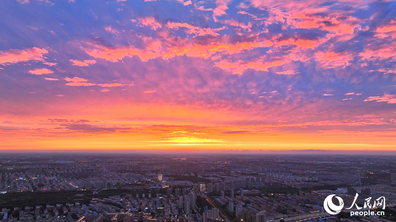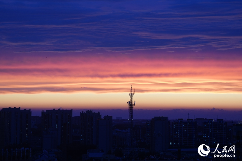 據悉,晚霞火燒云是日落時出現的赤色云霞,形成原因是陽光通過厚厚的大氣層,被大量的空氣分子散射的結果,是大氣變化的現象之一。