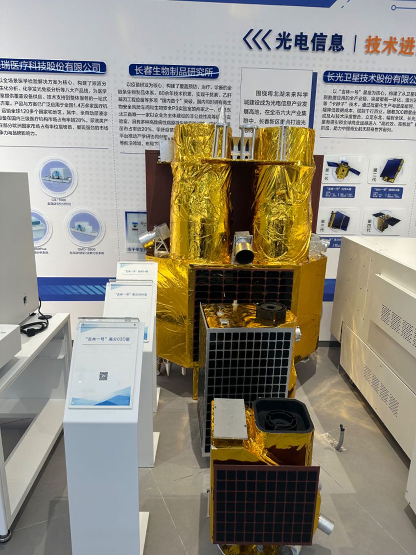 現(xiàn)場(chǎng)還展出了長(zhǎng)光衛(wèi)星研發(fā)的一到四代衛(wèi)星以及一箭41星模型;小白智能科技研發(fā)的能夠檢測(cè)語(yǔ)文、數(shù)學(xué)和英語(yǔ)三個(gè)科目的小白人AI學(xué)能測(cè)評(píng)機(jī)器人;邁達(dá)醫(yī)療生產(chǎn)的射頻腫瘤熱療機(jī);百克生物水痘疫苗;金賽藥業(yè)生長(zhǎng)激素等產(chǎn)品,每一展品都科技感十足。