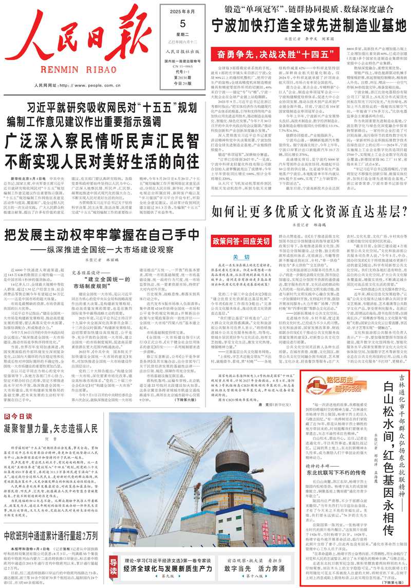 《 人民日報 》( 2025年08月05日 01 版)