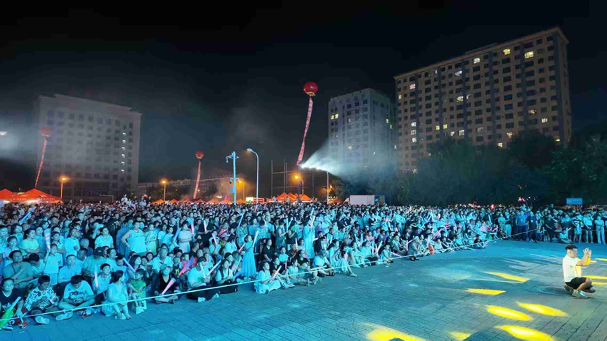 夜幕低垂,七點鐘時分,廣場上宏偉的舞臺燈光璀璨點亮。伴隨著主持人激情洋溢的開場致辭,活動正式拉開序幕。伯都訥街道精心編排的舞蹈《嬉樂》率先引爆了現場的氛圍,舞者手中鮮艷的紅綢在廣場中央翩翩起舞。隨后,區文化館的歌手劉賀以一曲《生而平凡》感動全場,觀眾紛紛舉起手機,點亮一片星海,與歌聲共同演繹著“平凡人亦是盛夏主角”的溫馨故事。緊接著,雙排鍵演奏的《鐵血丹心》以現代科技感重新詮釋了經典,少年們的精湛演出激起一陣陣熱烈掌聲。蒙古族舞曲《思念陪著鴻雁飛》帶領市民仿佛步入了夢幻般的草原。激情四溢的曳步舞《我跟我癡心》更是將現場的氣氛推向高潮。活動中穿插的兩輪抽獎環節,一次又一次掀起熱烈的氛圍。手提獎品的李女士滿臉喜悅:“帶著孩子出來乘涼,意外地遇到了好運!”廣場一側,查干湖啤酒兌換點前排起了曲折的長隊,冰鎮的酒香在空氣中彌漫,陌生人之間的碰杯與笑語,繪制出了城市中心最為動人的繁華圖景。