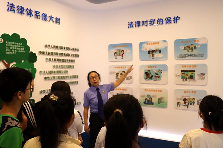 在市檢察院,孩子們參觀了未成年人法治科技館。檢察院工作人員利用生動案例為孩子們上一堂生動的保護未成年人普法課、預防性侵法律教育課,引導其增強自我保護意識。
