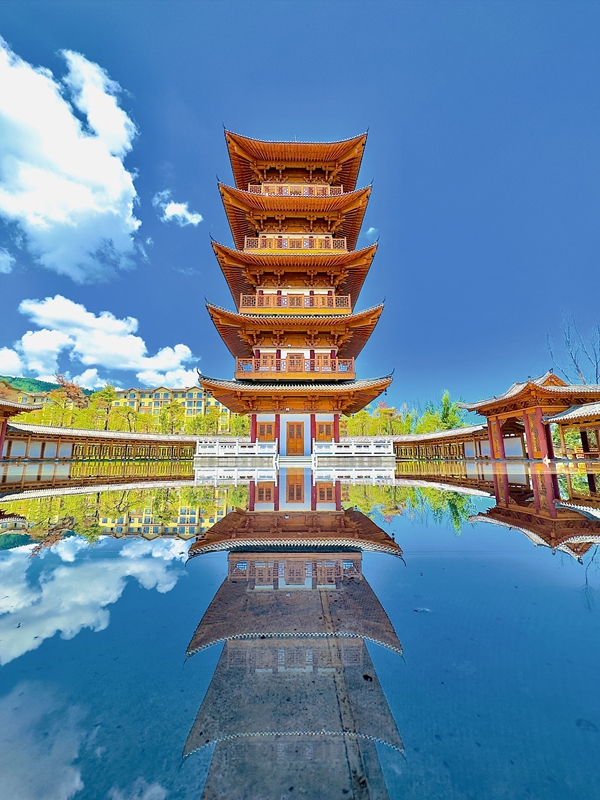 篝火的暖意尚未消散,白晝的奇旅已悄然展開。踏入百年部落溪水里古村落,12座歷經140年風霜的朝鮮族老宅靜述歲月。婚慶房中,納彩禮樂正演繹著傳統婚俗的莊重;打糕房里木槌起落,糯香隨捶打聲漫溢;千套華服任您化身朝鮮族兒女,于青瓦白墻間定格異域風情。轉角步入渤海驛站區(qū),38.8米高的京祜塔巍然矗立——飛檐斗拱托起五層福愿(福祿壽喜財),白晝登塔可俯瞰邊境蒼茫,入夜水幕傾瀉,塔身流光與未熄的篝火星芒共舞,織就夢幻畫卷。