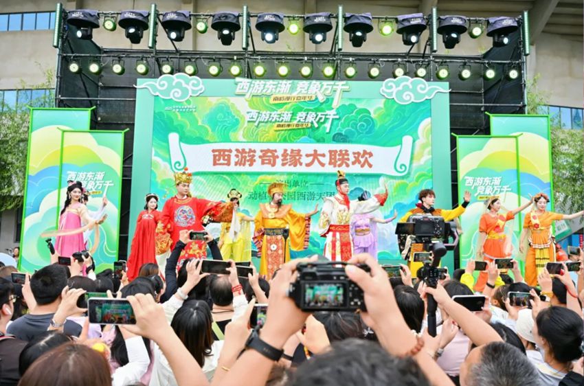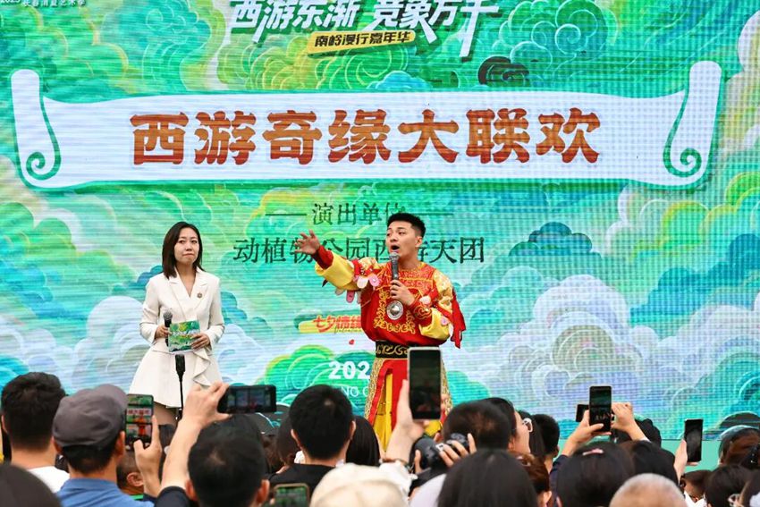雪餅猴靈巧轉(zhuǎn)動(dòng)手絹,唐僧深情獻(xiàn)唱,豬八戒大秀才藝……“西游天團(tuán)”帶來(lái)的既神通廣大又風(fēng)趣幽默的演出,在七夕當(dāng)天讓柔婉的浪漫與沸騰的人潮相撞,現(xiàn)場(chǎng)的精彩根本讓人挪不開(kāi)眼。
