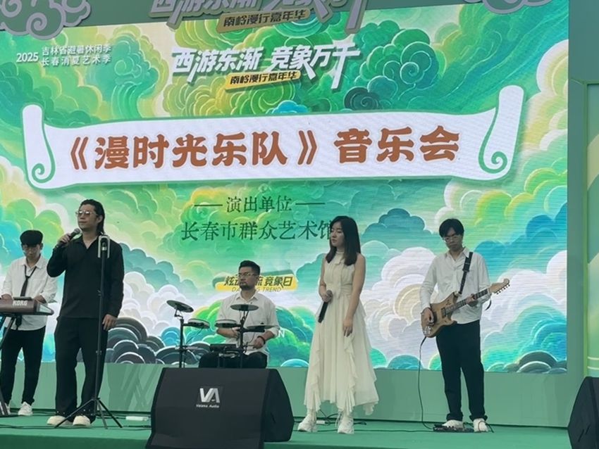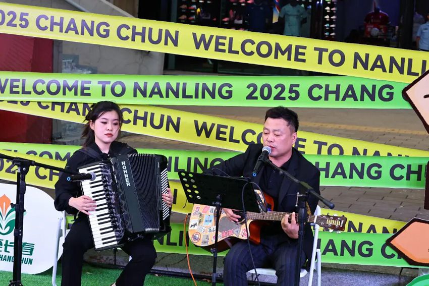 在主舞臺(tái)不遠(yuǎn)處的長(zhǎng)春文旅街頭音樂(lè)會(huì),更是氛圍感拉滿。隨著一首首優(yōu)美動(dòng)聽(tīng)的音樂(lè)響起,舞臺(tái)燈光溫柔亮起,觀眾自發(fā)舉起手中的熒光棒,點(diǎn)點(diǎn)熒光隨著音樂(lè)節(jié)奏輕輕搖晃,這場(chǎng)戶外“音樂(lè)會(huì)”讓人們瞬間沉浸在愉悅的音樂(lè)氛圍里。