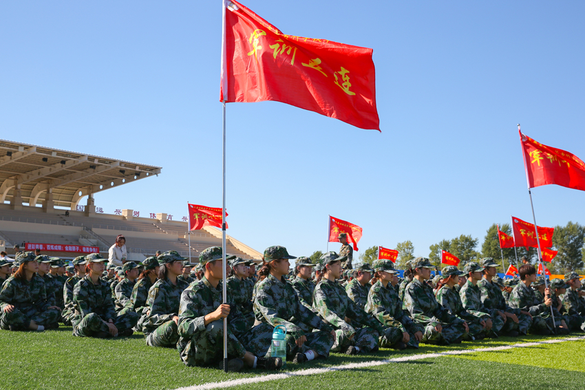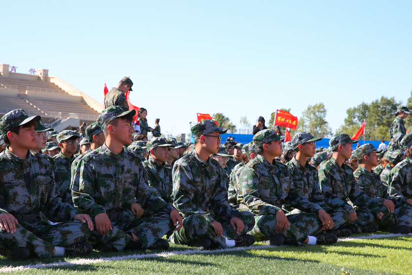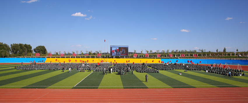 正值大一新生軍訓之際,長春金融高等專科學校組織4400余名大一新生在體育場集中收看課程直播,讓新生們在入學之初就接受深刻的愛國主義和革命傳統教育,為他們的大學生活注入強大的精神動力。
