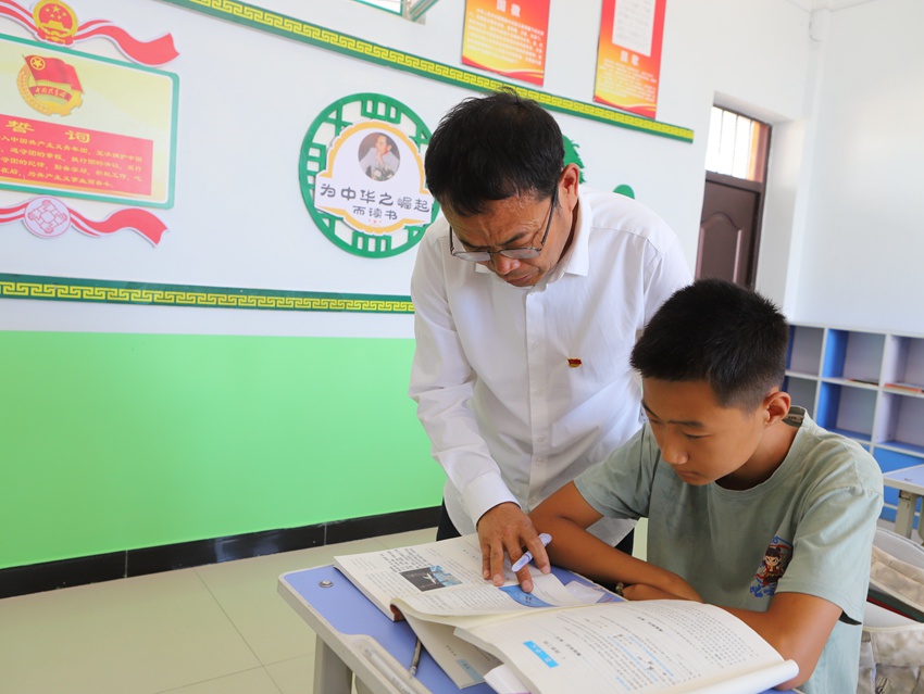 課堂是夏友好最熱愛的陣地。他總愛坐在教室后排,兩本厚厚的聽課筆記,密密麻麻記錄著教學(xué)細(xì)節(jié)。課后,他與年輕教師促膝長談,分享教學(xué)心得;課間,他會(huì)把基礎(chǔ)薄弱的學(xué)生叫到辦公室,耐心講解難題。在他的帶動(dòng)下,校園里掀起了義務(wù)輔導(dǎo)的熱潮,近500人次的課后指導(dǎo),讓知識(shí)的光芒照亮每個(gè)孩子的眼睛。學(xué)生的身心變化明顯、學(xué)習(xí)熱情高漲,教學(xué)成果喜人:中考工作中,2023年參考人數(shù)27人,升入25人;2024年參考人數(shù)24人,升入中學(xué)20人;2025年,參考人數(shù)25人,升入中學(xué)24人。