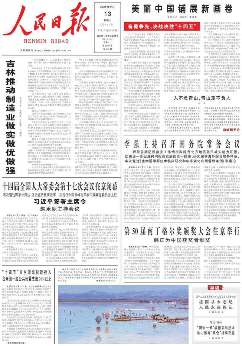 《 人民日?qǐng)?bào) 》( 2025年09月13日 01 版)