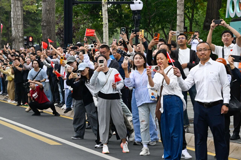 沿途,自發前來迎接戰旗歸吉的市民有序聚在道路兩側,用目光追尋戰旗車隊,眼中滿溢敬意。