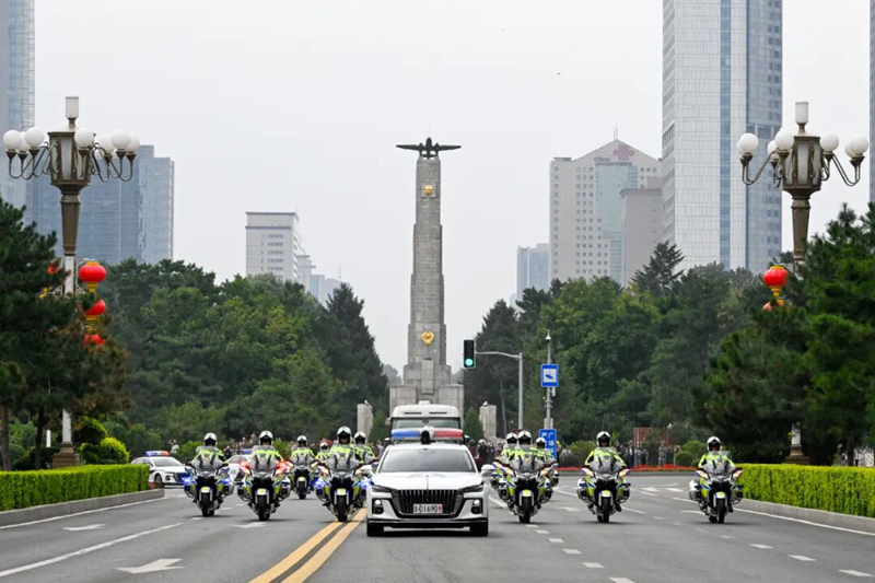 車輪滾滾,戰旗車隊駛離機場高速,正式進入長春市區,沿著吉林大路、解放大路、新民大街前行……這座城市的歷史與現代在戰旗行經的路線上交相輝映。