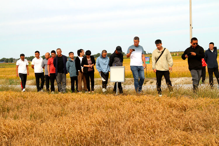 “大家可以看到,我們展示的這些水稻新品種,普遍具有株型緊湊、赤枯病發生情況輕,灌漿速度快、結實率高,后期不早衰等顯著優勢。”吉林省農業科學院水稻研究所副研究員馬巍在田間向參會人員詳細介紹。他介紹,在本次展示的品種中,16個高產耐鹽堿品種在中輕度鹽堿地環境下,充分發揮了穩產高產潛力,畝均產量表現亮眼;15個耐鹽堿品種則在重度鹽堿地塊中展現出極強的環境適應性和抗逆能力,有效抵御了鹽堿脅迫對水稻生長的不利影響。經現場對比,這些展示品種在各自適應的鹽堿環境下,長勢均明顯優于周邊種植戶常規種植的水稻品種,為鹽堿地水稻增產增收提供了有力的品種支撐。馬巍強調,通過這樣的實地觀摩活動,能夠直觀、準確地評估各品種在實際生產條件下的表現,為后續優良品種的大面積推廣以及農戶科學選種提供堅實的科學依據。