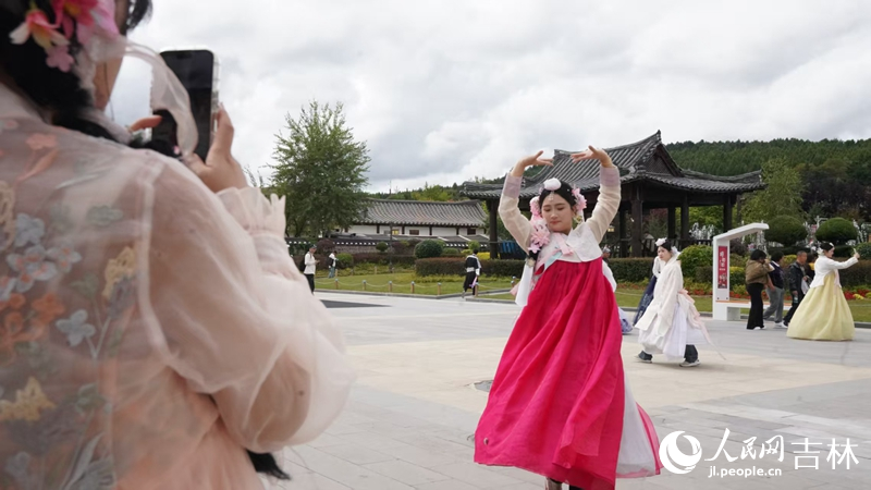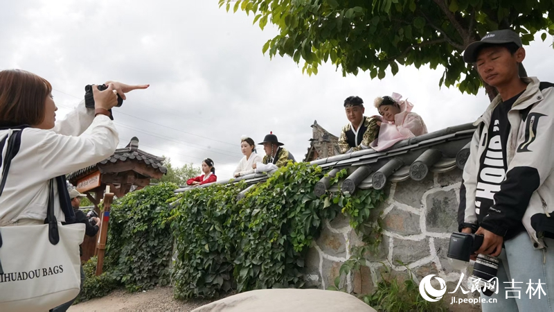 漫步在古色古香的建筑群中,游客們身著鮮艷的朝鮮族傳統服飾,親身體驗朝鮮族文化魅力。在這里,隨處可見“朝鮮族公主”或“宮廷貴族”在傳統房屋院落、秋千區、水車旁等特色場景前拍照留念。