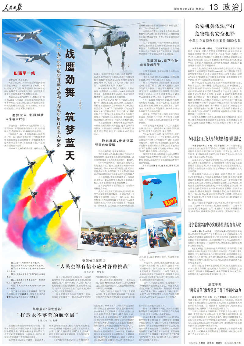 人民日報大版面聚焦空軍航空開放活動和長春航空展:戰(zhàn)鷹勁舞 筑夢藍天