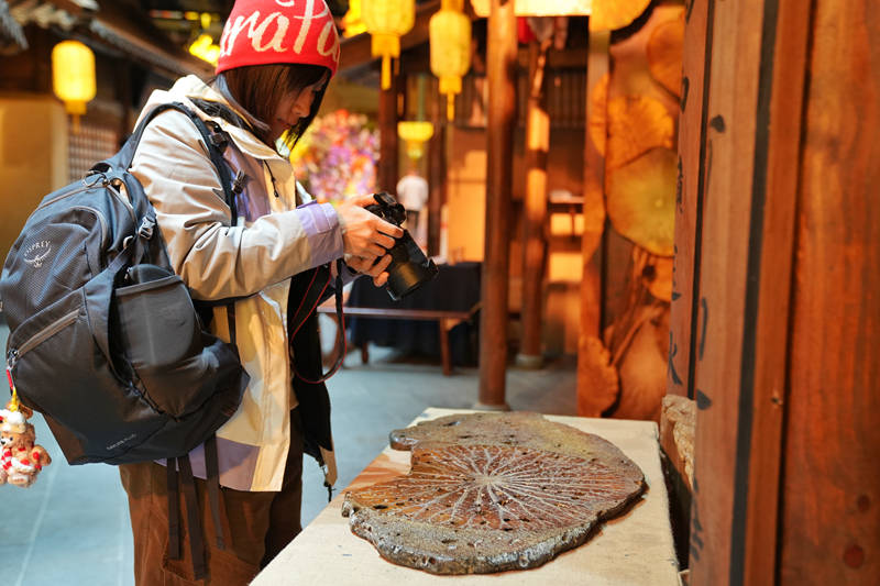 走進(jìn)演藝街區(qū),木質(zhì)樓閣重施新彩,朱紅與橙黃交融映照,呈現(xiàn)出一幅鮮活而富有古韻的街景圖卷。街區(qū)創(chuàng)新采用“文化+科技+演藝”的融合模式,復(fù)原了金代市井生活場景,琳瑯滿目的商品、此起彼伏的叫賣聲,構(gòu)建起虛實(shí)交織的時空場景。