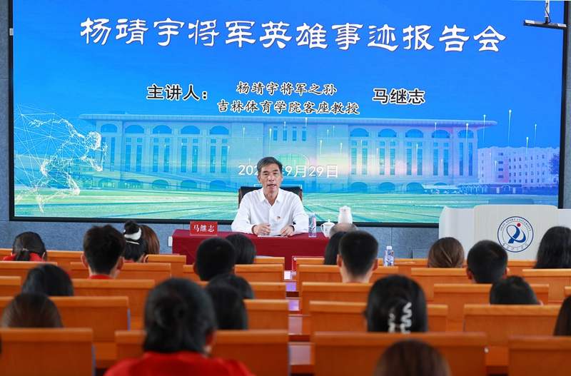 開幕式后,吉林體育學院以“主會場+分會場”形式舉辦了“吉體紅色講堂”。馬繼志為全體學子深情講述了楊靖宇將軍的英雄事跡,真摯的情感與動人的故事令在場師生深受觸動、備受鼓舞。同學們紛紛表示,要以楊靖宇將軍為榜樣,把愛國之情化為報國之行,把理想信念轉化為學習和訓練的動力,為實現中華民族偉大復興的中國夢貢獻青春力量。吉林體育學院副校長武紅軍主持報告會。