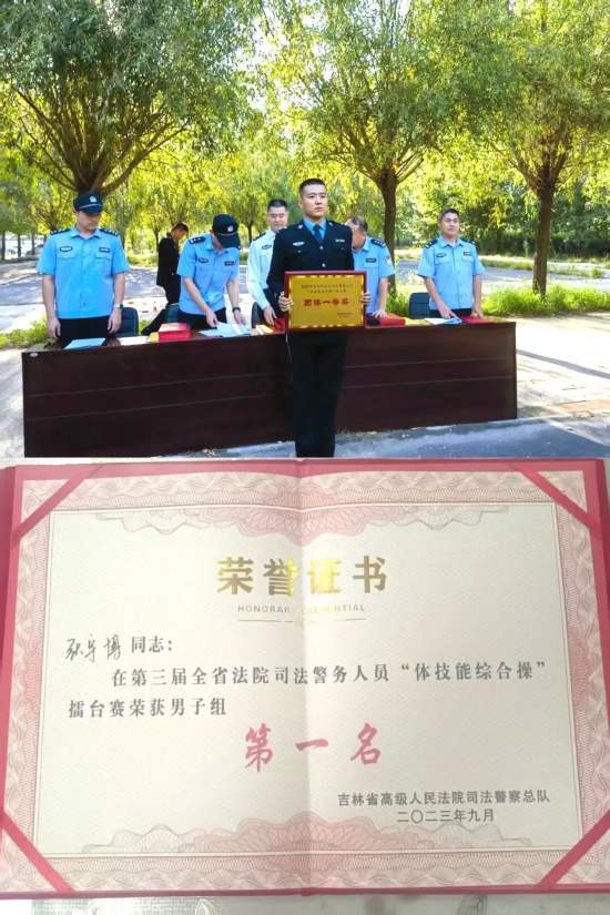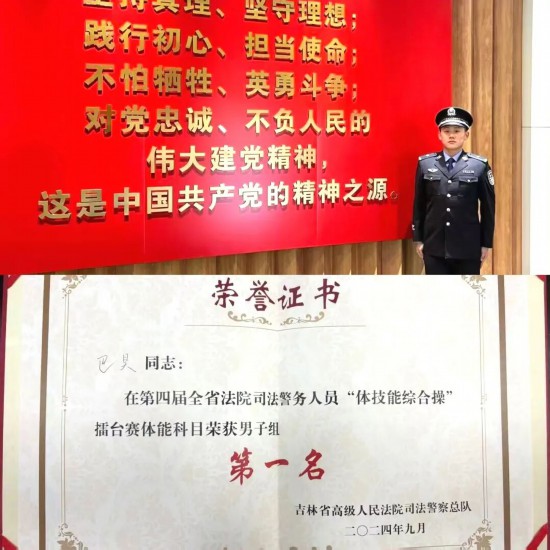 凈月法院干警湯閱增在體技能綜合操項目中不懼艱難、刻苦訓練,時刻以最高標準嚴格要求自己,與隊友互相鼓勵配合,拼盡全力、苦練不懈,咬緊牙關堅持到最后,最終代表長春地區參賽并獲得2025年全省法院司法警務人員“體技能綜合操”擂臺賽——體能(男子)第一名的好成績!至此,凈月法院連續三年派員參加全省比賽均獲得全省體能冠軍,創造了凈月法院司法警察大隊建院以來歷史最好成績!