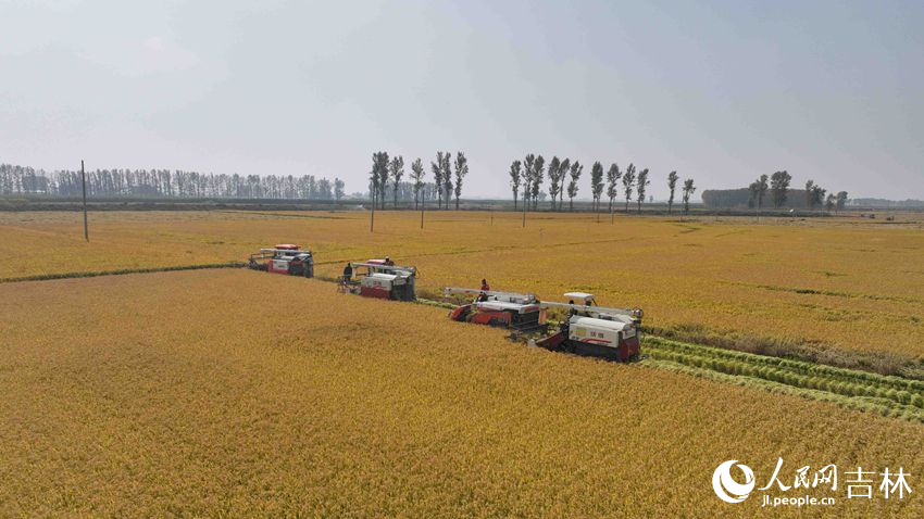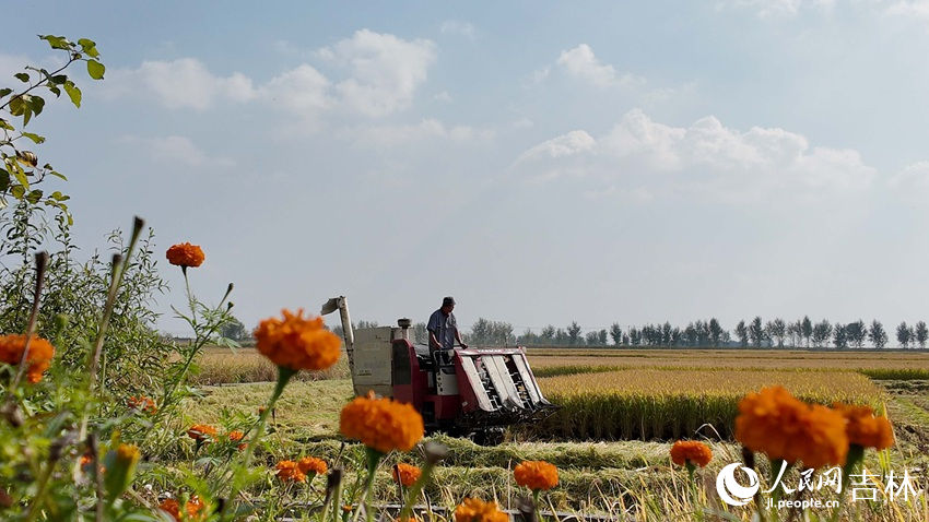 金秋九月,吉林省長春市榆樹市的稻田里一片金黃,收割機(jī)轟鳴作響,農(nóng)民們臉上洋溢著豐收的喜悅。藍(lán)天白云之下,耀眼的稻浪映襯出一幅動人的豐收畫卷。