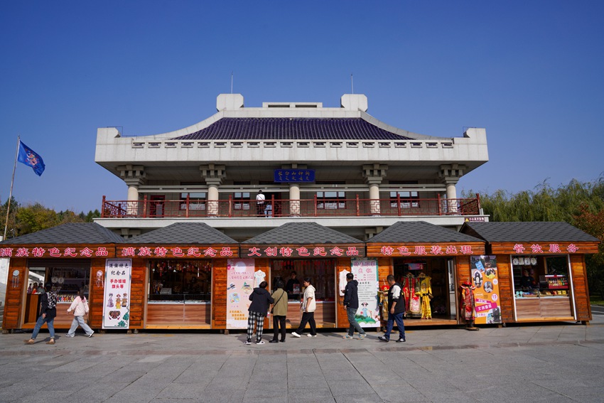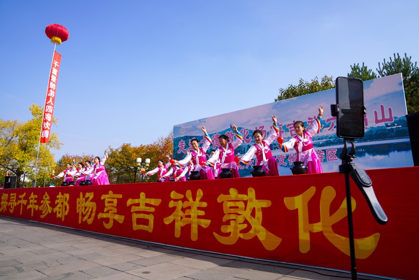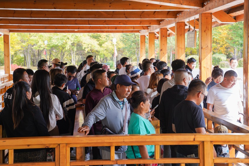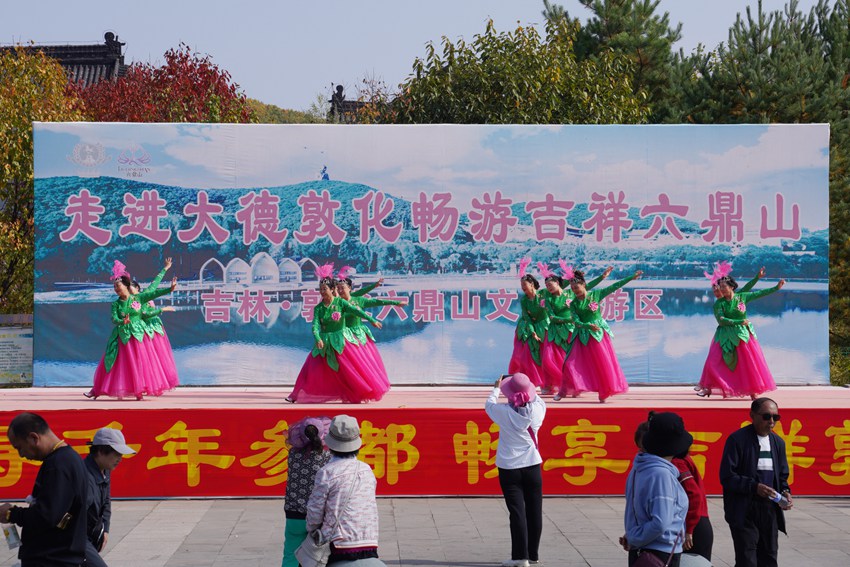 清晨,景區入口便排起長隊,游客們有序檢票入園。游客服務中心前舞臺上,民俗特色演繹活動準時開演,瞬間點燃現場氣氛。朝族的靈動舞姿、滿族的端莊舞步、藏族的豪邁舞蹈輪番上演,搭配東北黑土地特色舞蹈與禪行禪舞,盡顯民族魅力。國風漢服旗袍秀驚艷亮相,演職人員身著華服款款而行,將古典韻味展現得淋漓盡致。嗩吶、非洲鼓等樂器演奏交替登場,歡快的旋律引得游客紛紛駐足觀看,紛紛舉起手機記錄精彩瞬間。