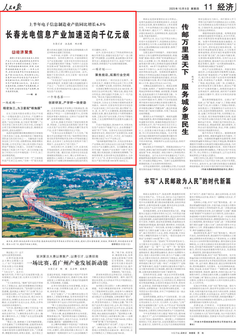 人民日?qǐng)?bào)頭條聚焦:長春光電信息產(chǎn)業(yè)加速邁向千億元級(jí)