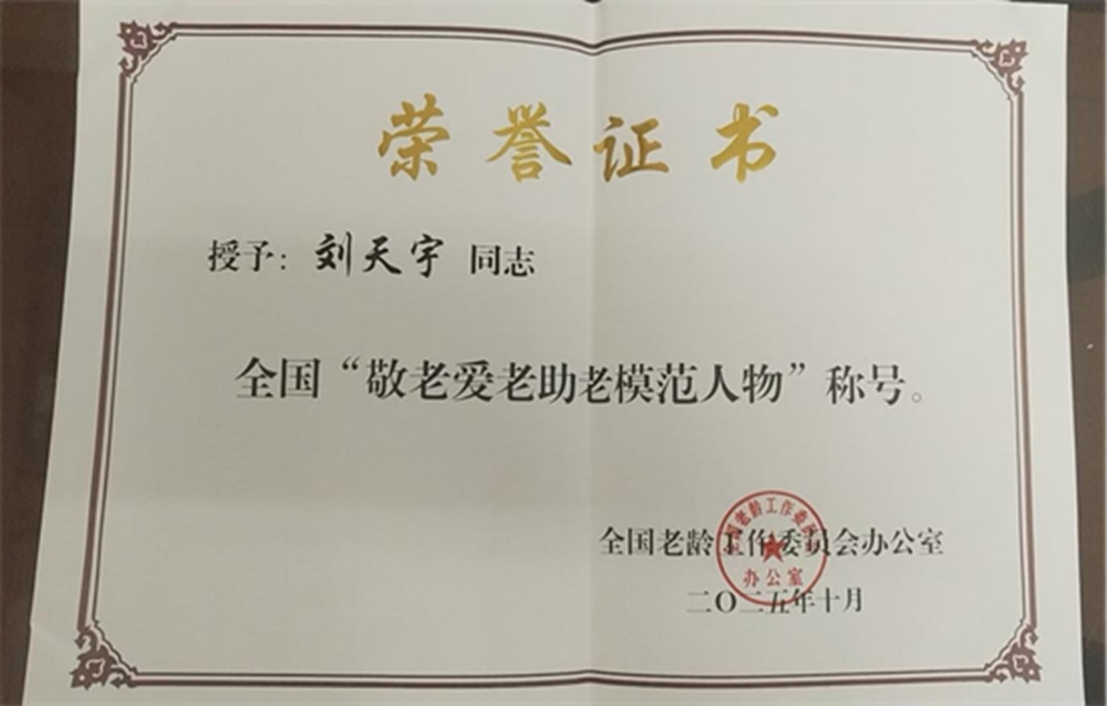 全國“敬老愛老助老模范人物”稱號榮譽證書 供圖 凈月高新區黨工委宣傳部
