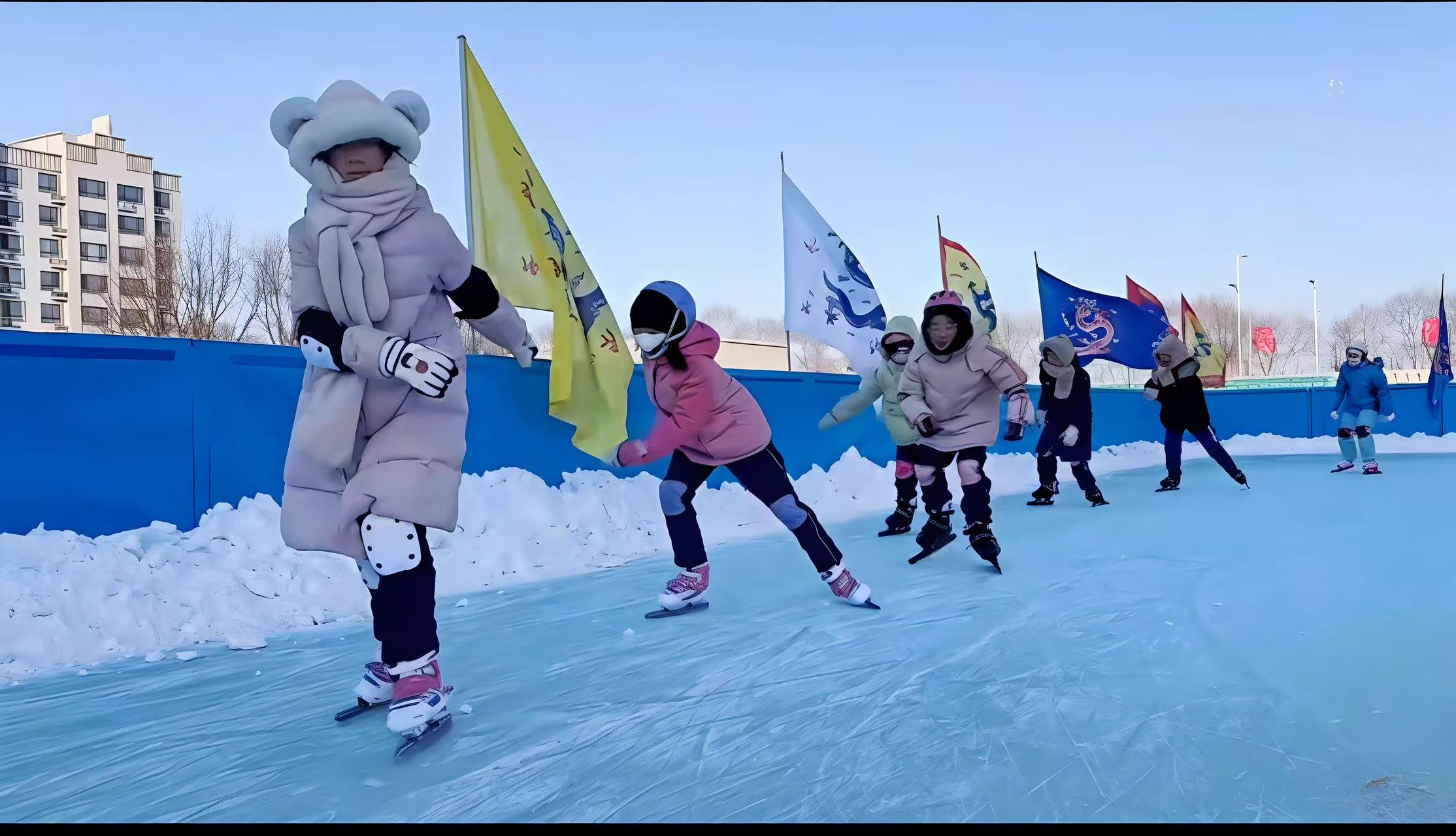 系統課程,筑牢冰雪運動根基。學校圍繞“體健行遠,悅動成長”的體育育人目標,科學構建了貫穿一至六年級的階梯式冰雪課程體系。低年級以趣味游戲和文化認知啟蒙興趣;中年級引入輪滑等基礎訓練;高年級則開設滑冰、冰壺、雪地足球等專項課程。學校持續投入,打造了包含2300平方米大眾冰場和800余平方米專業訓練場的區內領先冰雪場地,并建設室內訓練區,確保冰雪教學常態化、全年化開展。