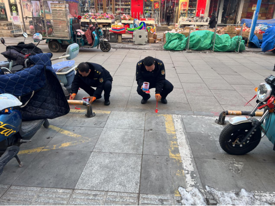 城管執(zhí)法局結(jié)合歷年管理經(jīng)驗與城區(qū)實際,按照“不影響交通、方便群眾、疏堵結(jié)合”的原則,開展實地勘察。最終選定人流集中且不占用主干道、盲道的區(qū)域,集中設(shè)置春聯(lián)臨時銷售攤點。通過統(tǒng)一劃線明確每個攤位的經(jīng)營范圍與邊界,有效解決以往流動攤位占道經(jīng)營、無序擺放帶來的交通擁堵和市容混亂問題,充分考慮經(jīng)營需求與市民便利,且攤位間距合理,預(yù)留充足通行空間,讓選購春聯(lián)的市民能夠舒心漫步、從容挑選。